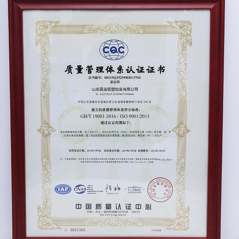 质量管理体系认证证书