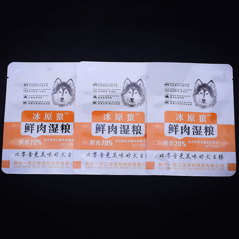 宠物食品包装的形式各种各样,用于不同规格的宠物食品的包装。宠物食品包装袋质量直接影响着宠物食品质量。宠物食品包装袋是根据所包宠物食品的性状来决定袋型和包装袋所用材质!宠物鲜湿粮包装一般采用的是可以121度高温灭菌的包装材质!宠物膨化产品零食类的,一般采用的是常温包装!包装袋的彩印图案和包装袋的袋型我公司可以根据客户要求免费设计!